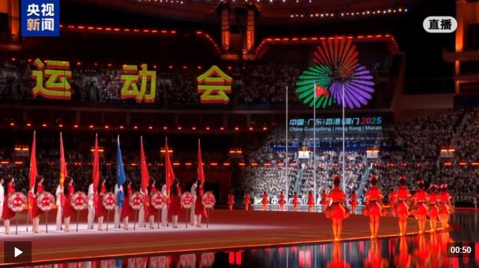 十五运会开幕式现场全体起立,升中华人民共和国国旗,奏唱中华人民共和国国歌。