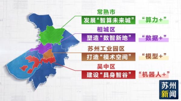“四大集聚区”聚焦大模型、数字智能、具身智能、智算应用四个领域,其中苏州工业园区打造“模术空间”,相城区塑造“数智新地”,吴中区建设“具身智谷”,常熟市发展“智算未来城”,在加强品牌协同效应的同时,分别形成“模型+”“数据+”“机器人+”“算力+”的生态体系。
