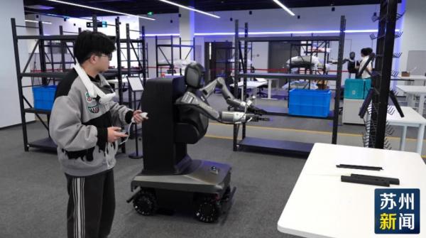 作为常熟市三大“创新核”之一,“智算未来城”建设正全面提速。在由常熟市政府与国地中心携手共建的具身智能机器人创新中心训练场,多款机器人正在进行仓库取货场景的模拟训练。