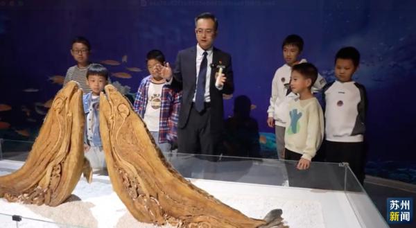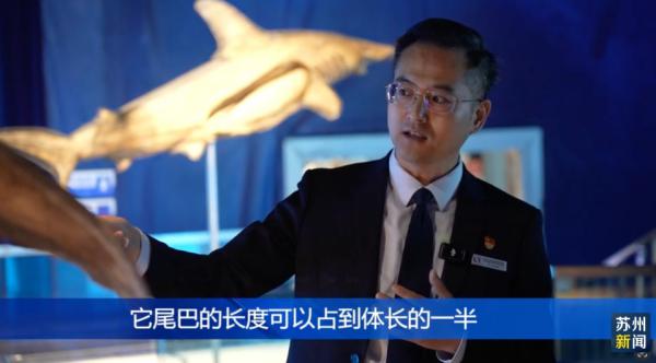 “这个鲨鱼非常有特点,大家看它有长长的尾巴,长度可以占到体长的一半。”在馆内,高海斌正为参观团队进行生动讲解。从长尾鲨的外形到海豚、海豹的身体结构,观众们全身心沉浸在这片“海底世界”中。一位小朋友兴奋地表示,在这里学到了许多新知识,尤其喜欢二楼的脊椎动物展区。