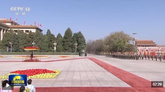 会见前,习近平和夫人彭丽媛在人民大会堂东门外广场为哇集拉隆功和王后素提达举行欢迎仪式。
