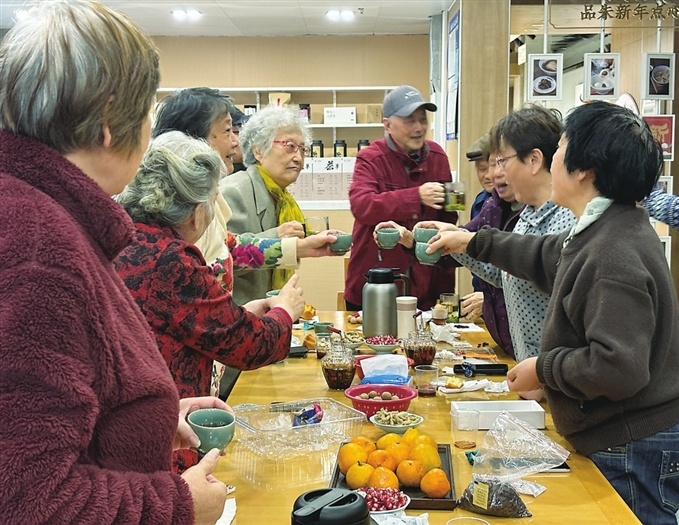 该社区茶社依托姑苏区沧浪街道综合为老服务中心搭建,在原有助餐、娱乐、便民服务等为老服务基础上,新增了家门口的休闲茶饮空间,同时将茶社与花园景致巧妙相融,让居民享受“在花园中品茶”的沉浸式体验。走进茶社,茶香氤氲,喜爱喝茶的社区居民围坐一堂。资深茶艺师一边演示专业的冲泡手法,一边讲解茶与健康的知识,“不同的茶有不同的功效,绿茶清热解暑适合夏季,红茶温润暖胃更宜秋冬。”居民们边品鉴红茶、绿茶等茶品,边欣赏茶社内的绿植。