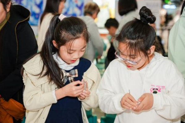 在手作体验区内,孩子们在手作老师的引导下,亲手制作环保冰箱贴,将创意融入绿色生活。