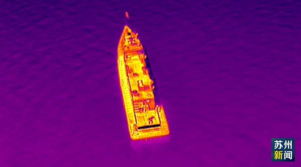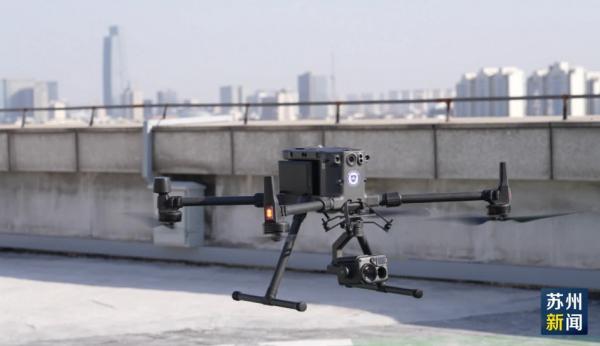 苏州市交通运输综合行政执法支队机动执法大队队员张训迪介绍,它搭载了一个高清的、有热成像模式的摄像头,机身下面有一个额外的模块搭载救生圈,通过这种方式可以及时发现落水者并精准进行救生圈的投放。