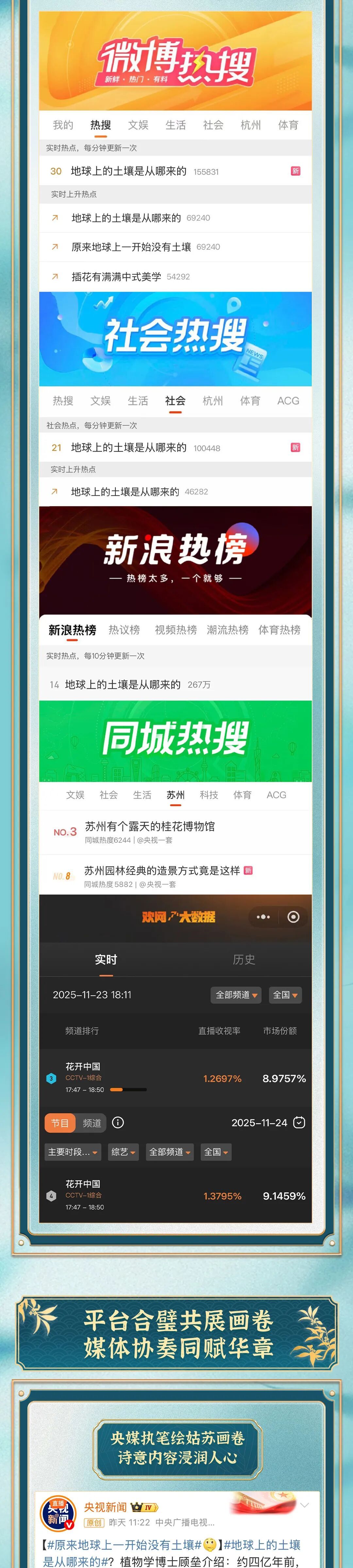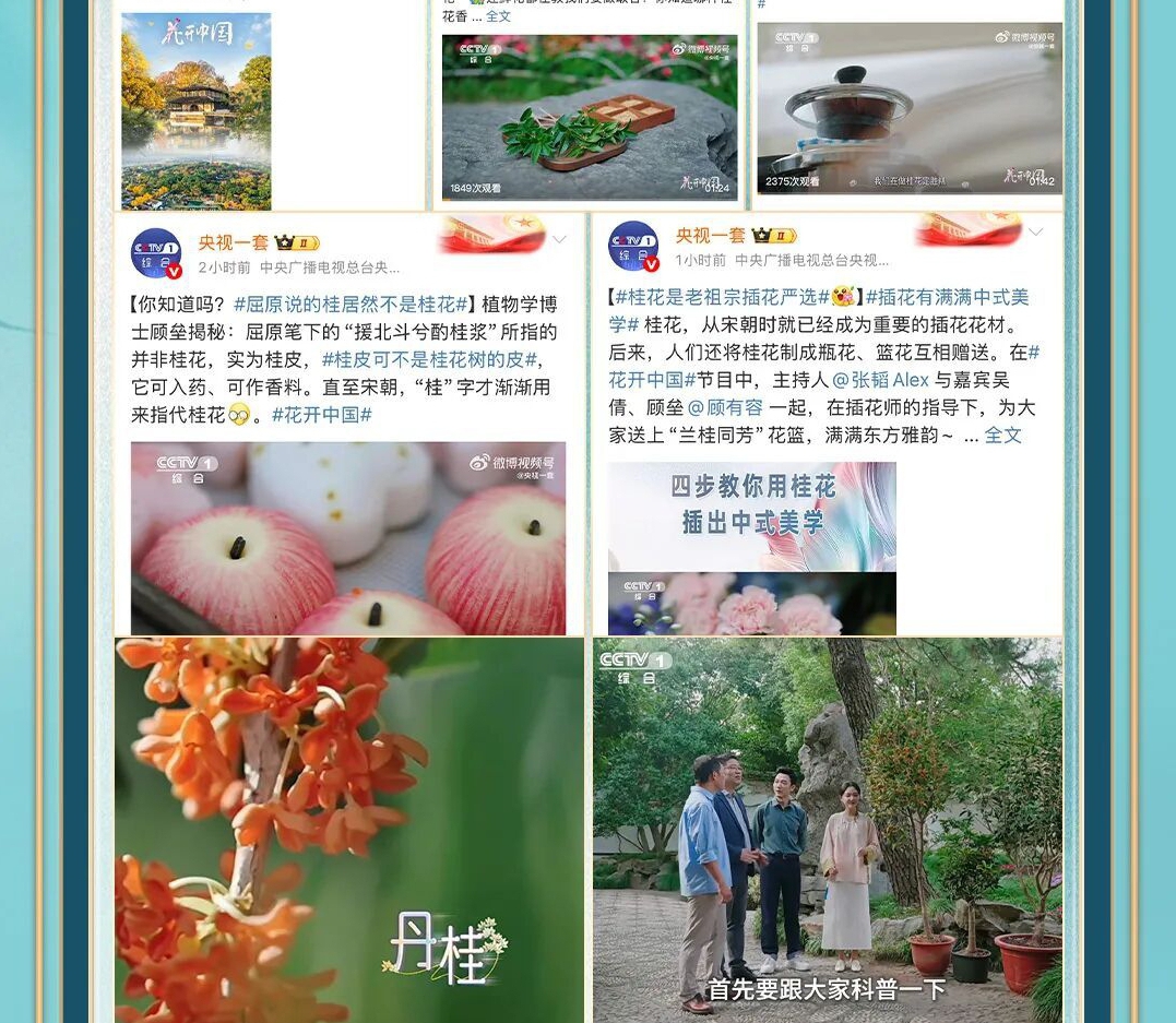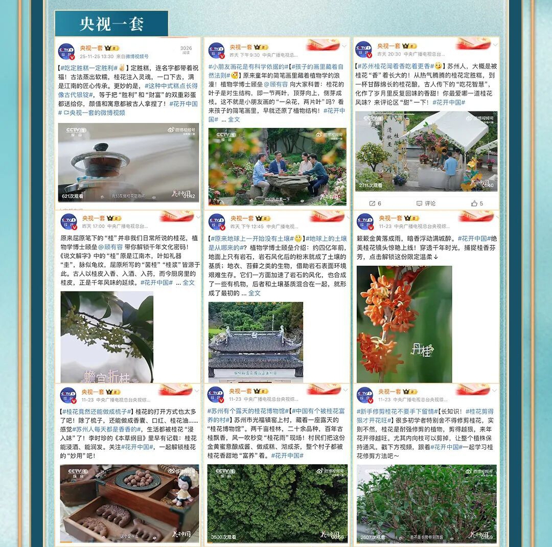 11月23日,央视《花开中国》苏州篇在CCTV-1综合频道档播出后引起全网热议和全国关注,本期节目将桂花置于苏州的文化语境中,从园林美学、市井生活到产业经济,多维度解读了这抹秋香如何浸润一座城。