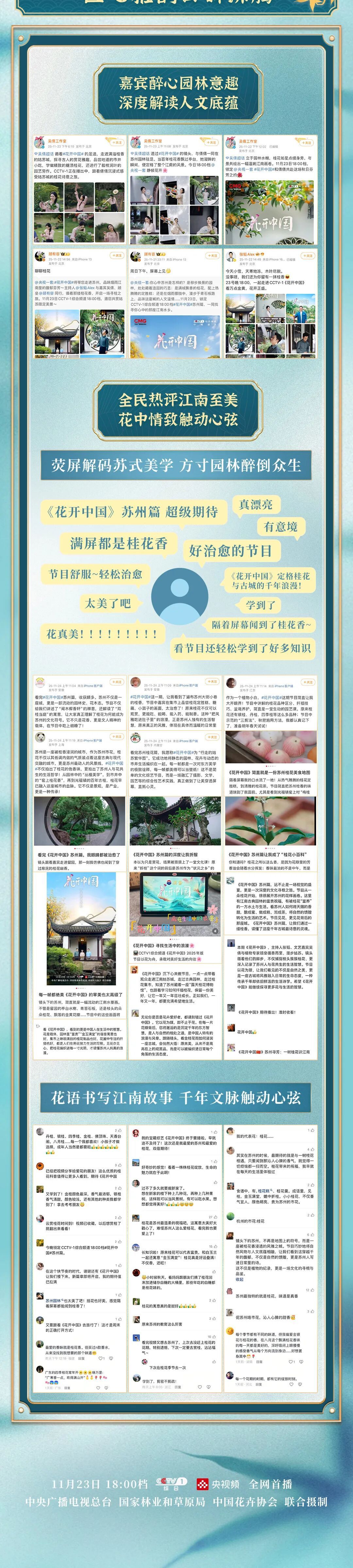 观众普遍称赞节目,以花为媒,将苏州园林的诗意美学与传统文化深度结合。
