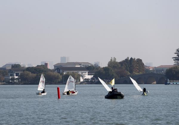 11月29日,苏州工业园区金鸡湖像一面被阳光轻轻打磨的镜子,一些帆船爱好者像一把把被风撒出的玻璃珠,驾船倏地散向湖心,帆影点点交错,掠过湖面上那层薄得几乎透明的金光,扬帆起航,宜把心事交给风。