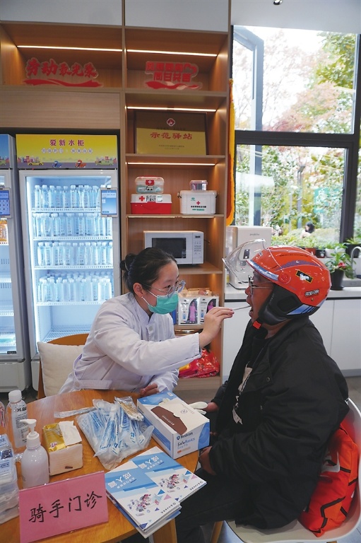 城际・海棠驿站内,口腔医生为新就业群体免费进行检查。 记者 徐璟杰 摄