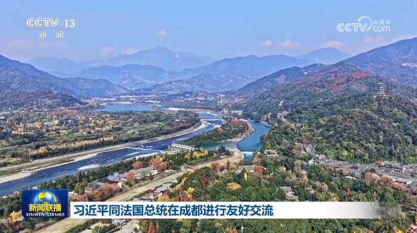 马克龙表示,都江堰山清水秀、景色优美。两千多年前建成的水利工程至今仍在发挥作用,中国人民的勤劳智慧令人赞叹。法中两国都有悠久的历史文化,两国人民对美好生活的追求是相通的,法中合作可以共谋发展繁荣、造福两国人民。