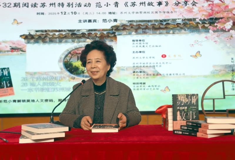 江南初冬,书香浸润。今天(12月10日),第32期“阅读苏州”特别活动走进苏州大学,以“笔墨绘苏城,文脉润学府”为主题,特邀著名作家范小青携《苏州故事》开展分享会。
