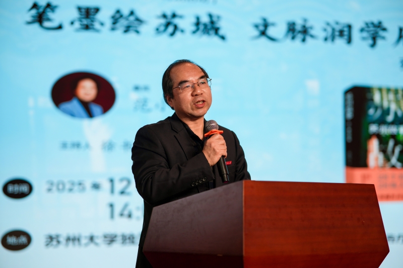 苏州大学文学院院长曹炜致辞时表示,学府是文脉传承的沃土,苏大文学院深耕书香育人,已连续承办29届苏大读书节,常年承接国家及省市重点文化任务,主持的国家社科基金重大项目达8项,位居苏大文科院系首位,始终以传承文化为己任,主动投身地方文化建设。苏州本就是一部读不尽的旷世巨著,我们扎根苏州热土,最易贴近苏州、读懂苏州,理应扛起文化传播责任,助力古城文脉赓续。