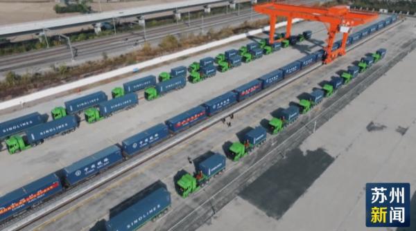 从“公铁水”到“大循环”,苏州还在持续提升国际物流通道能力。自2012年首开国际货运列车以来,目前苏州中欧(中亚)班列已经开通12条进出口双向线路。今年以来,苏州班列公司与江苏(苏州)国际铁路物流中心共开行进出口班列528列,货值超17亿美元。