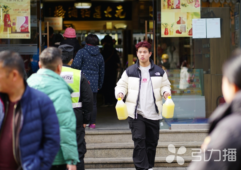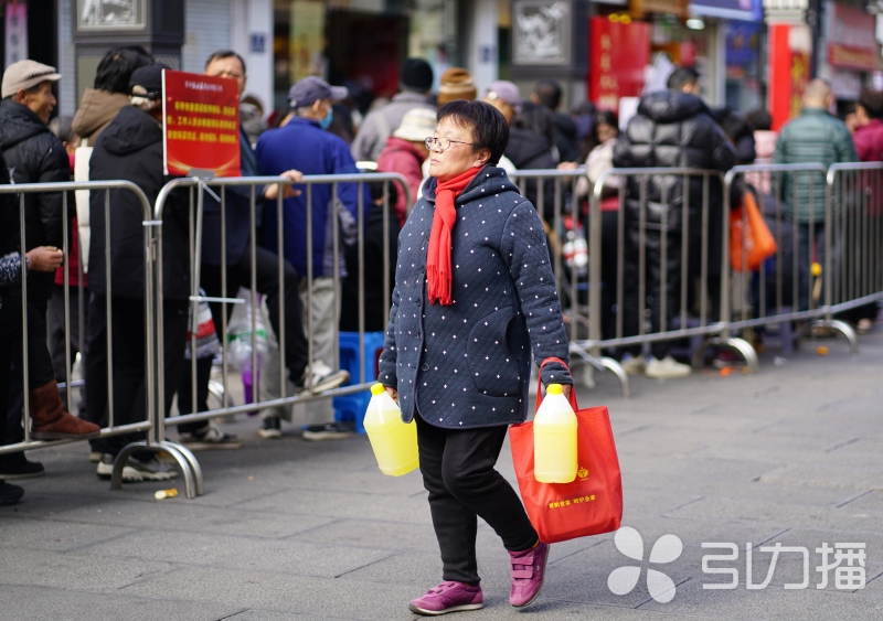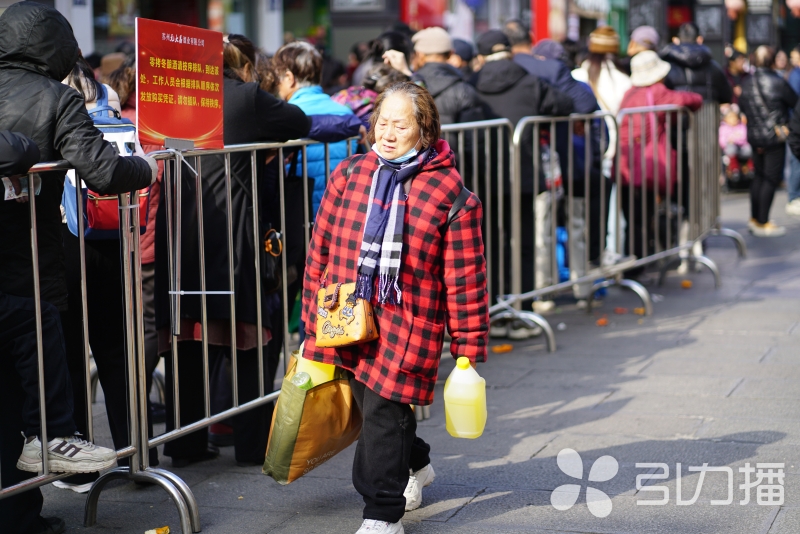 冬至临近,苏州观前街元大昌门前排起长队,市民等候“拷”冬酿酒。苏州人过冬至是有仪式感的,为这口传统“甜酿”,有人甘愿排队数小时。拎酒出门的顾客笑容洋溢,满是冬日幸福。(记者 杨海石 文/摄)
