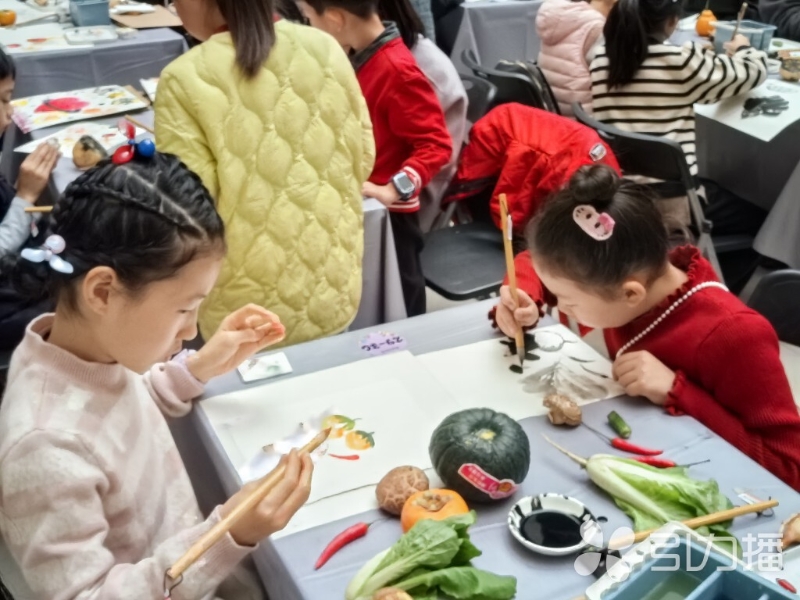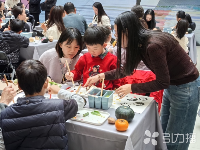 昨天(12月20日)上午,兆佳巷邻里中心一楼大厅化身为“艺术课堂”,一场以“烟火里的吴门蔬果”为主题的“流动的美术馆”美育活动在这里举行。活动以苏州冬至民俗为根,以吴门书画为魂,以菜场烟火为土壤,邀请了60组亲子家庭参与。