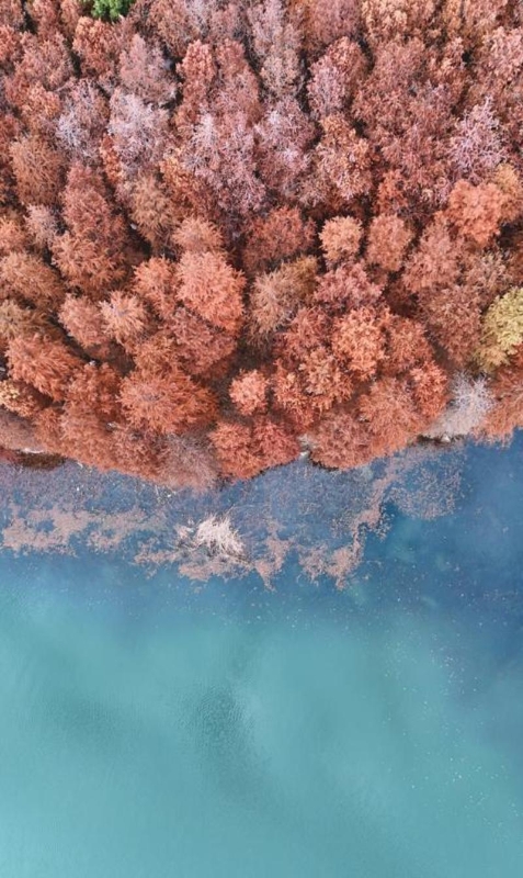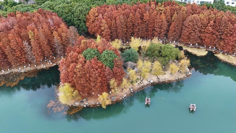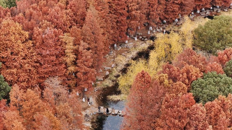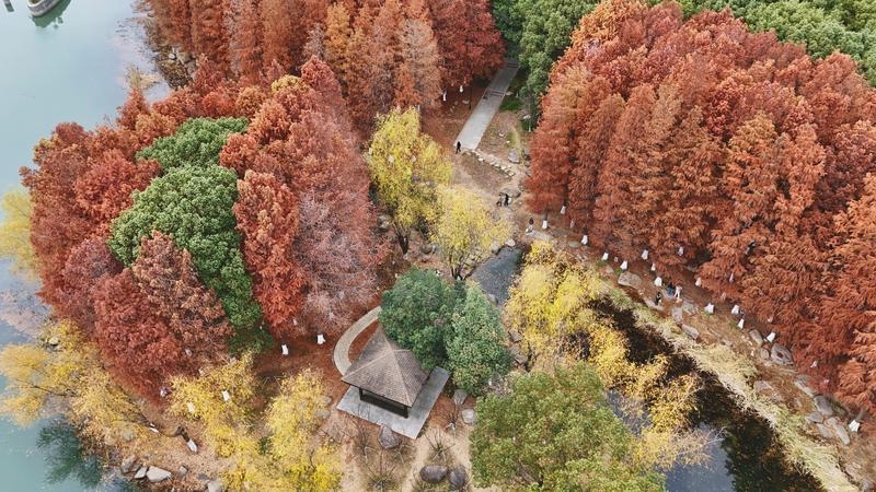 冬至的斜塘河畔,水杉林正进行一场静默的燃烧。它们沿水而立,枝干向天伸展,似一束束被忽然凝固的朱红色火焰。斜塘河水平静如玉,冷冽而沉默,与岸上铺天盖地的炽烈形成奇妙的抗衡。风过时,绯红的细叶簌簌飘落,一场热烈与清冷的漫长对话在此发生。(记者 王亭川 文/摄)