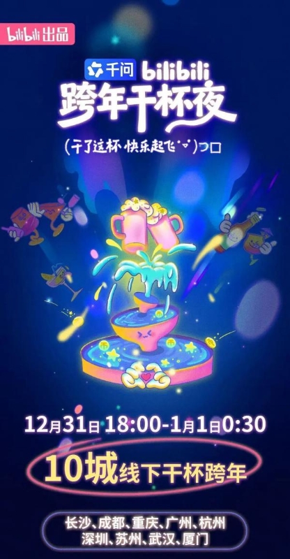 这是B站每年跨年之际打造的S级重磅线下活动,与线上跨年晚会紧密联动,现场不仅设有舞台演出、跨晚直播大屏,还包含丰富的互动打卡与快闪活动,为年轻群体打造一个充满仪式感的专属跨年场域。