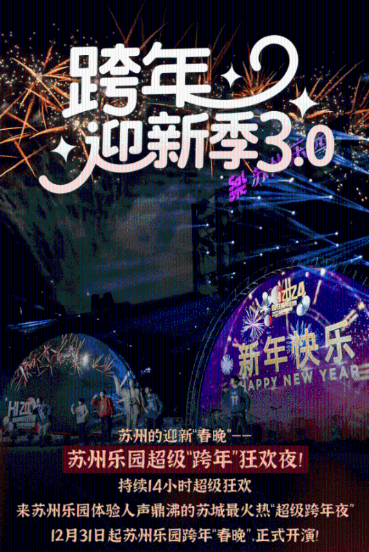 苏州乐园超级跨年狂欢夜将于12月31日盛大开启,活动融合跨年限定烟花秀、超长无人机表演与零点无人机扫码领红包等新年仪式,打造满满跨年氛围。