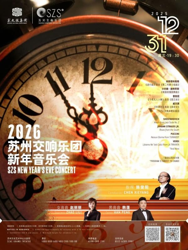除了这些跨年活动,还有一系列精彩演出等你来。苏州交响乐团、苏州爱乐乐团、维也纳皇家爱乐乐团……