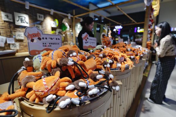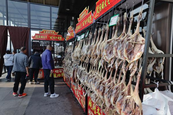 昨天(12月30日)中午,沪宁高速阳澄湖服务区内,南来北往的游客在此歇脚、打卡,古色古香的建筑、各地的美食、设计新颖的文创,吸引游客在此消费、购物,感受渐浓的苏式年味。(记者 倪黎祥 文/摄)
