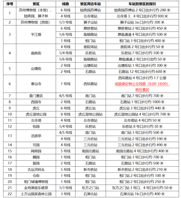 ● 注:前往虎丘湿地公园的游客还可乘坐地铁8号线至虎丘湿地公园站4号口,步行约700米到达景区。