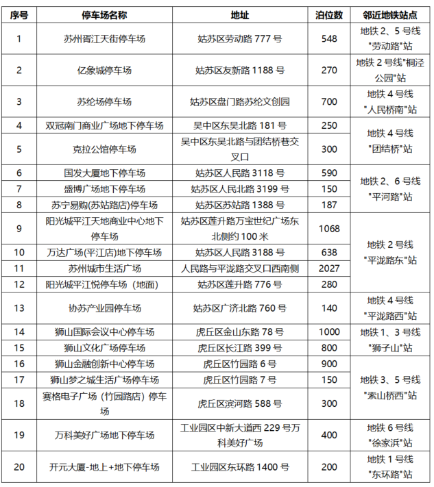 为方便游客快捷、高效出行,建议将车辆停放至地铁沿线大型停车场后,换乘地铁出行。具体停车场梳理情况如下: