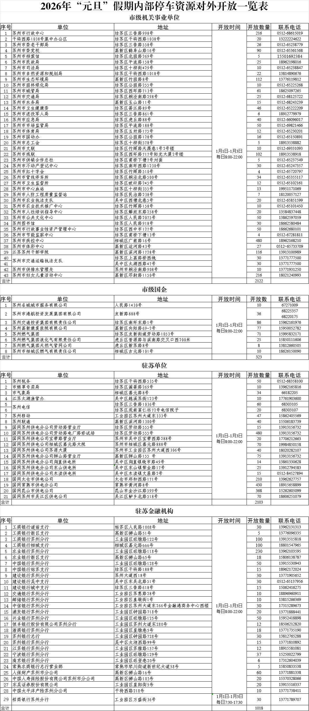 昨天(12月30日),记者从苏州市机关事务管理局获悉,明年元旦假期,全市346家机关企事业单位内部停车场35129个停车位将向社会免费开放,并提供系列暖心服务,为假期出行“减负”,让市民游客玩得踏实舒心。