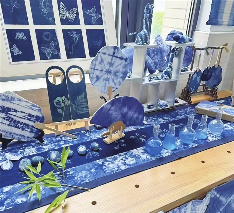 小学生社团的“蓝染工坊”作品。 苏州高新区浒墅关供图