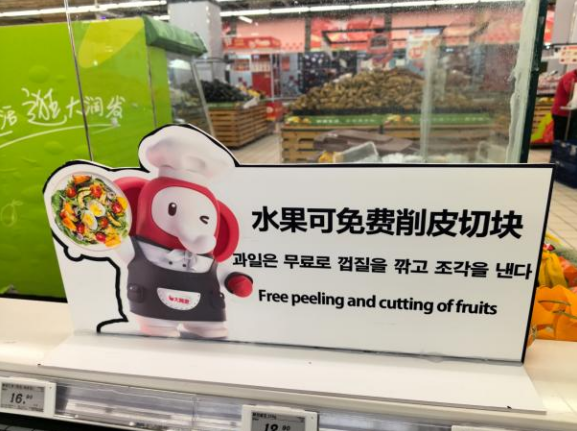 为接住这波入境游红利,大润发平型关店从商品、服务、支付等多维度进行优化,让韩国游客感受"宾至如归"的体验。商品陈列上,专门开辟韩国游客专属区域,将郑容和同款凤梨酥等热销品集中摆放,奥利奥礼盒等女性偏好商品置于黄金视线高度,酒区设置专属展陈台并提供免费试喝服务。 语言与支付障碍的破除更让体验感升级,店内动线指示、商品说明、服务提示均配备中韩双语标识,循环播放双语导览;开设韩国游客专用结账通道,支持Kakao Pay、UnionPay等常用支付方式,更推出Kakao Pay支付满300减25元的专属优惠。作为上海超市首个推出离境退税即买即退服务的门店,联合中国银行实现满200元可享9%即时退税,九成服务于韩国游客。出口处的中韩双语打车指南,详细标注了前往两大机场的预估车费,成为游客必备参考。