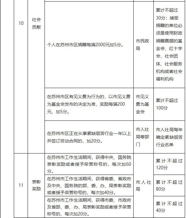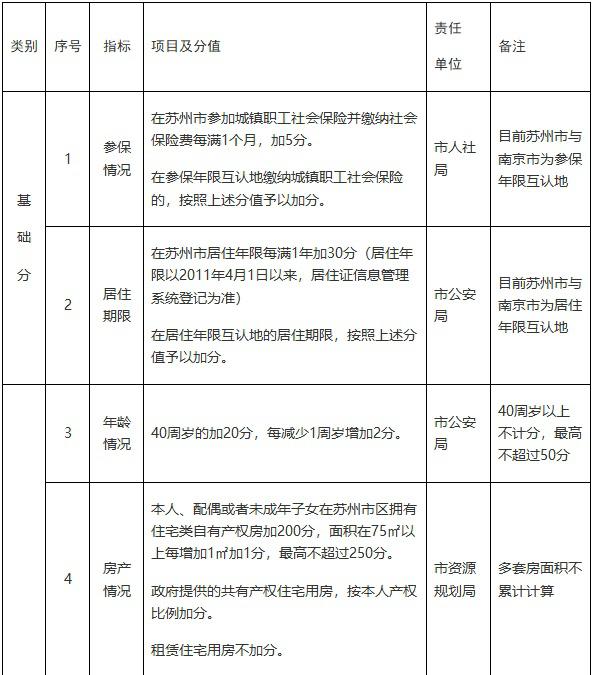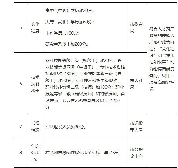 苏州市区积分落户计分标准及分值表