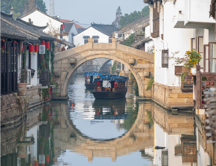 因水而生、依水成镇的甪直古镇,“五湖之厅、六泽之冲”的丰沛水系,交错的河道,流淌出江南的诗情画意,映照着枕水人家的闲适生活。