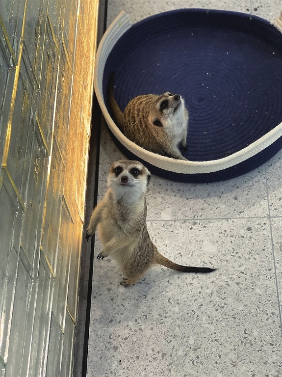 与顾客互动的狐獴。 记者 赵晨民 摄