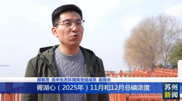 吴中生态环境局党组成员、副局长顾春茂介绍,工程完工后,胥湖心2025年11月和12月总磷浓度较2024年同期,分别改善约17%和75%,叶绿素和藻密度也有一定程度的下降,水生植物覆盖面积逐步增加。