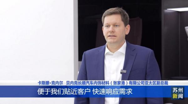 贝内克长顺汽车内饰材料(张家港)有限公司亚太区副总裁卡斯滕·克内尔表示,张家港地处长三角,成熟的供应链体系便于贴近客户,快速响应需求,有效提升研发效率,而当地优质的营商环境与长期政策支持,更让企业坚定了加大投入的决心。