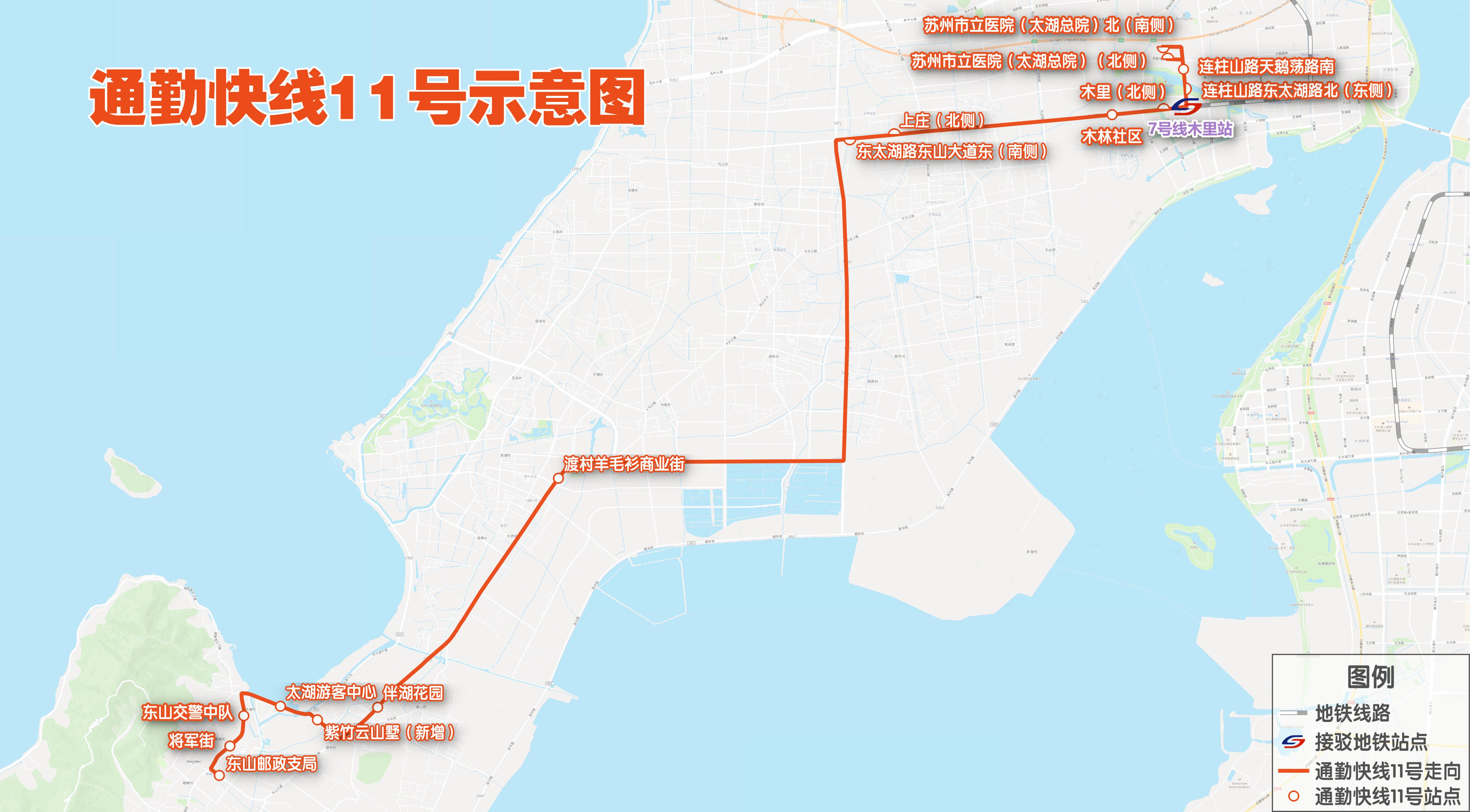 作为持续深化“公交+地铁”两网融合的重要举措,“通勤快线11号”实现了与地铁7号线“木里”站的“零距离”无缝接驳。乘客从东山片区出发,无需中途换乘,即可一站直达地铁站,快速衔接苏州市区路网,显著提升跨区域通勤效率。