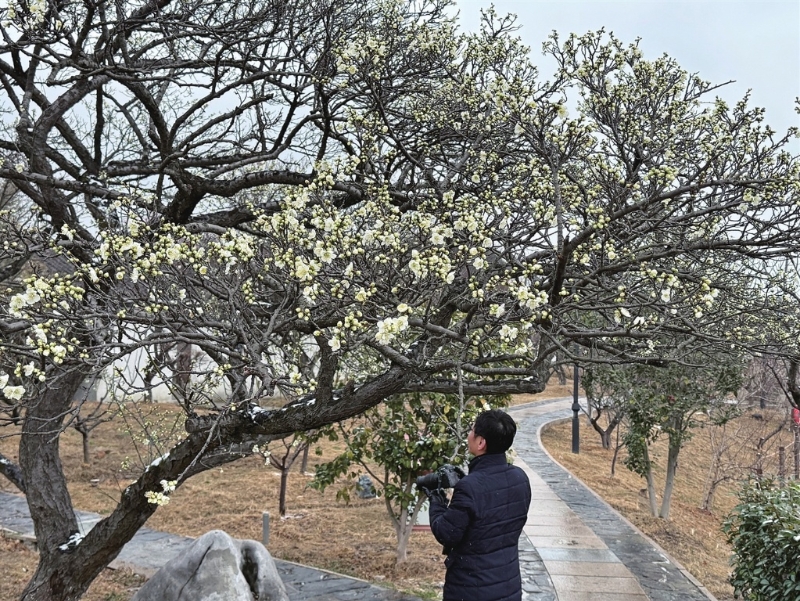 “往年,梅花要到1月底才零星开放,今年前期气温偏高,让花期提早了十天左右。”林屋洞景区负责人周建忠介绍,随着这两天气温骤降,梅花开放又将按下“暂停键”,但低温也能为花期续航蓄力,预计2月中旬将迎来梅花盛放期,可持续至3月初。