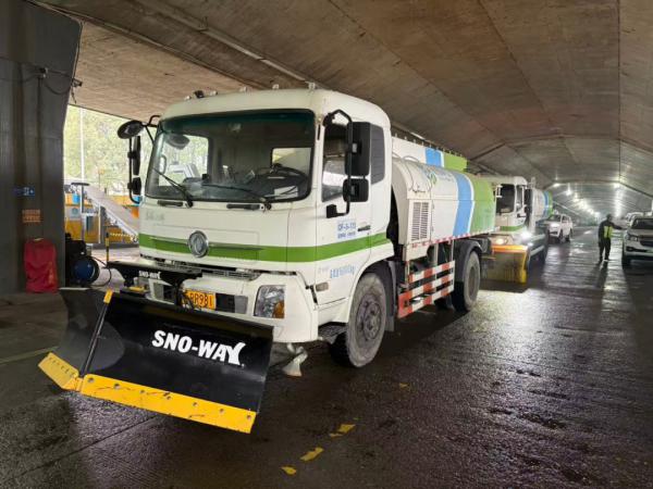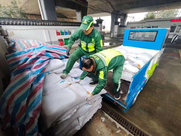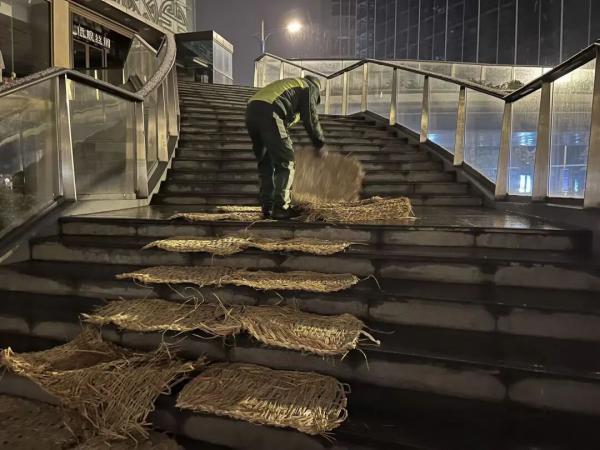 面对低温考验,姑苏区城管环卫部门提前部署,储备融雪盐(剂)160余吨、防滑草(麻)垫2万余个,并完成全区150余台除雪机械、撒布设备的全面检修与维护。