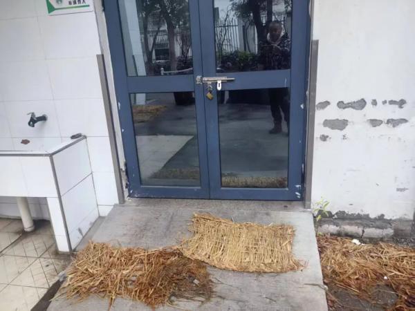 金阊实验小学校为了保证学生温暖上课,已经开启空调并在校园易滑点位铺设了草垫。