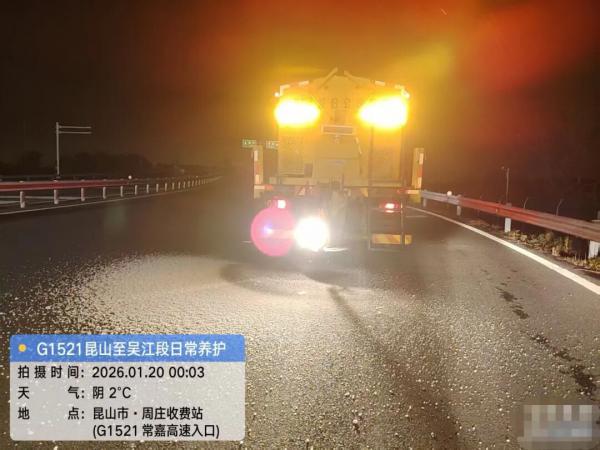 当天,苏州市管高速全线储备足量冬防物资,并在常台、常嘉、苏锡支线、苏台高速等重点路段布局15个应急驻点,27台综合除雪车随时待命,一旦出现积雪结冰,可立即在责任路段开展循环撒布作业,防止路面冰冻。