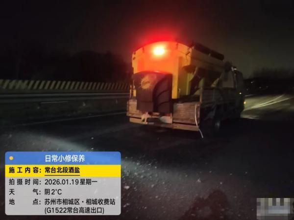 1月19日夜里,市管高速已完成预防性撤布,撒布里程463公里,出动人员95人次,共撒盐83吨、融雪剂33.5吨,全力护航高速出行安全畅通。