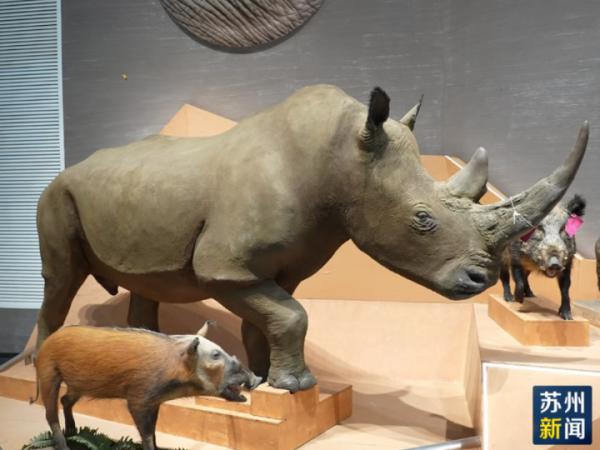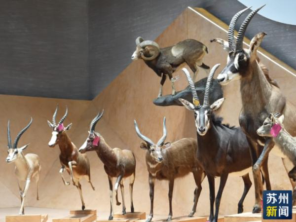 “自然之美”展厅陈列了由贝林基金会捐赠的珍稀动物标本,“尖峰战士”“角斗高手”“铠甲勇士”“天空信使”四个主题展区展出了非洲雄狮、叉角羚、白犀牛、红腹锦鸡等标本。