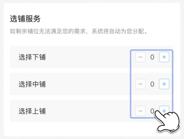 点击进入有该标识的车次添加乘车人后,系统就会自动打开选铺服务的列表,旅客可以自选卧铺车上中下铺。