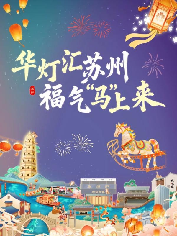 2月11日起,“华灯汇苏州 福气‘马’上来”新春文旅活动即将启幕。灯彩天团组合CP出道,邀你踏入这幅由江南烟火与璀璨光影织就的“新姑苏繁华图”。