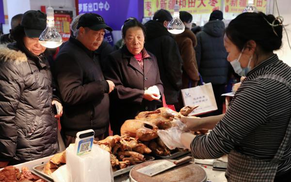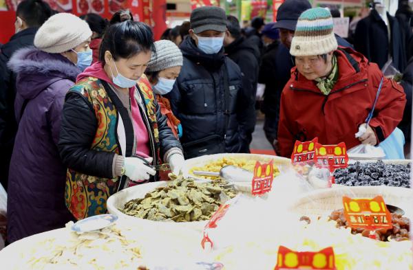 昨天(1月31日),许多市民趁着周末逛集购年货。临近春节,各地纷纷举办各种年货集市,琳琅满目的农副产品、坚果零食一站式满足市民春节采购的需求,欢欢喜喜过大年。