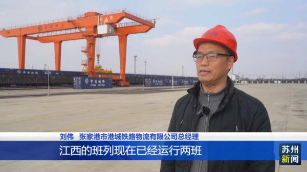 张家港市港城铁路物流有限公司总经理刘伟介绍,以前都是通过海运,大概在7到10天,通过铁路运输,可以节省一半的时间,这个班列在春节后,会一周两班常态化发车,在年后经过调整,争取4天就能把货送到客人手上。
