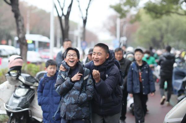 昨天(2月6日)上午,伴随着新一轮冷空气抵达,全市中小学生迎来了期盼已久的寒假。苏州工业园区金鸡湖学校门口,寒风中家长们翘首以待,孩子们迈着轻快步伐走出校园,和同学告别后跑步迈入欢乐假期。(记者 王亭川 文/摄)