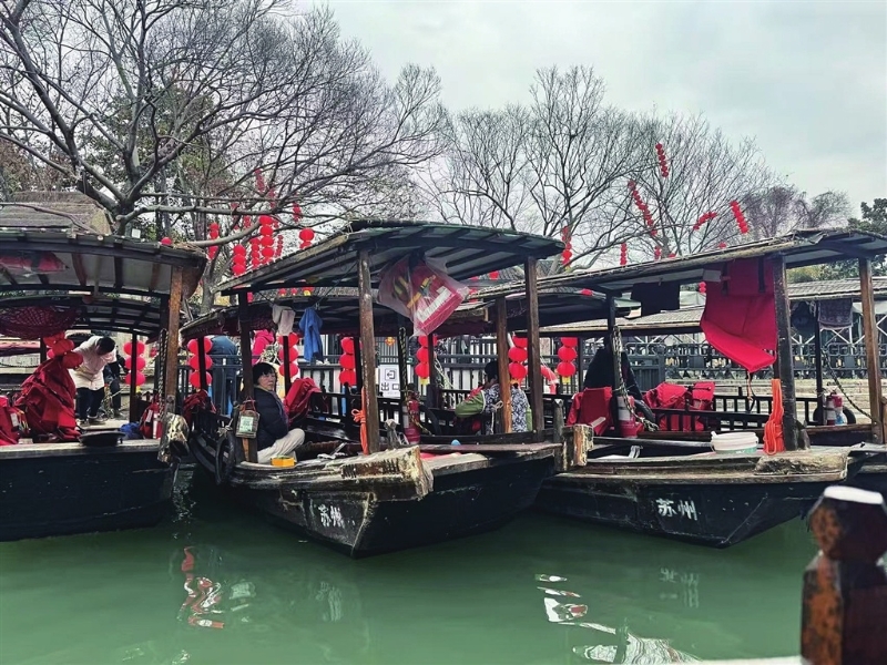 忙碌有温度,坚守有保障。记者了解到,春节期间,景区船娘实行“全员上岗”,每天早上8点30分准时到岗,细致清扫船舱、排查安全隐患,不放过任何一个细节。考虑到冬季衣物厚重影响自救,运营方特意为每位船娘配备了便携式手腕防护设施,替代了笨重的传统救生衣,既不影响摇橹操作,又能保证安全。这些贴心举措,让船娘们能安心坚守,也让游客的水乡之行更添保障。