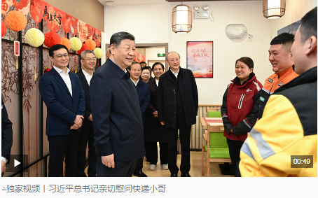 此情此景令人想起,2019年春节前夕,总书记在北京前门石头胡同看望快递小哥的温馨场景。