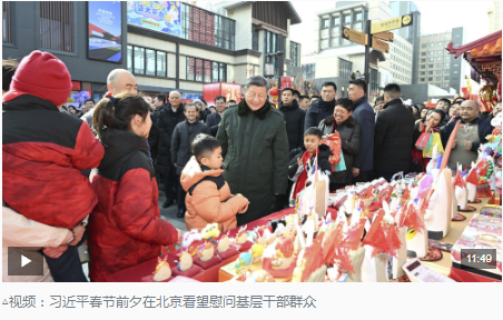 总书记察看街区风貌和各式年货摊位,同现场群众亲切交流。他愉快地向大家讲起年少时多次到隆福寺的情景,还购买了特色食品和文创产品。