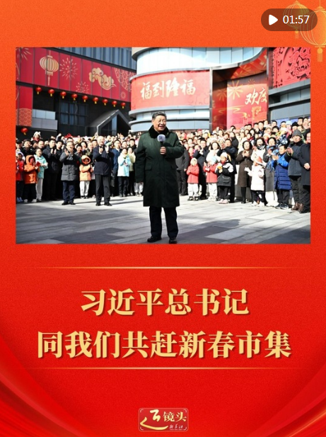习近平总书记同人民群众共赶市集、共迎新春,是年节里最温暖的图景。总书记走到百姓中间,送上真挚的新春祝福:“在农历马年龙马精神、身体健康、事业有成、阖家幸福!”