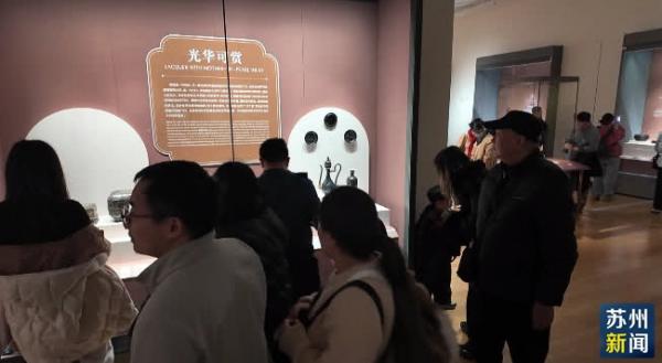 在苏州博物馆西馆,不少家长带着孩子前来参观,也有青少年研学团队专程到访。除了在探索体验馆参与互动项目外,刚启幕的“大漆三章——宋元明清髹饰艺术展”也吸引了众多小观众。